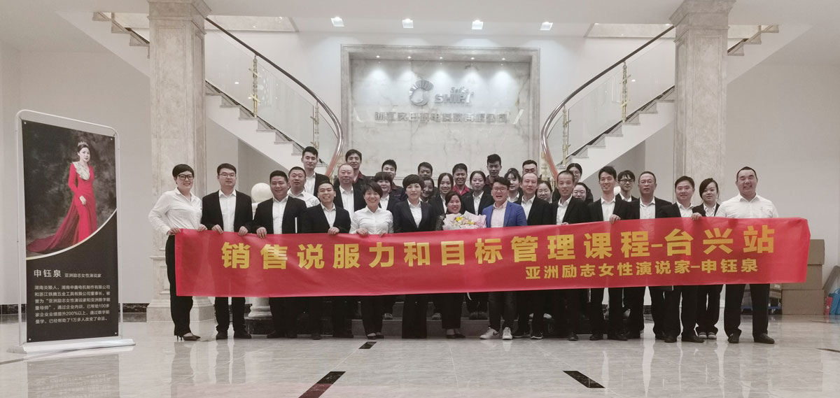 2019年11月07日是一個(gè)值得紀(jì)念的日子,在這一天臺(tái)興機(jī)電客戶-湖南申鑫電機(jī)制造有限公司、浙江鐵騰五金工具有限公司董事長(zhǎng),被譽(yù)為“亞洲勵(lì)志女性演說家和亞洲數(shù)字能量導(dǎo)師”申鈺泉女士受臺(tái)興總經(jīng)理盛情邀請(qǐng),蒞臨臺(tái)興機(jī)電科技有限公司,對(duì)臺(tái)興機(jī)電科技有限公司管理層進(jìn)行內(nèi)訓(xùn)。