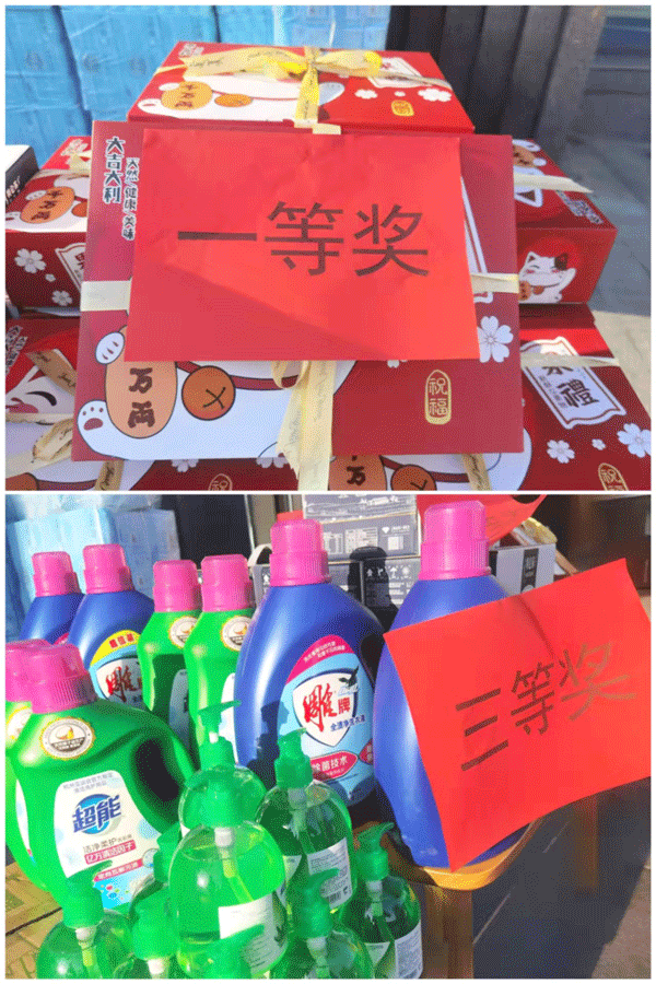 第四個(gè)游戲——“心有靈犀”,共20名參賽選手,兩人組隊(duì),參賽選手對(duì)面站立,間隔2米,選手抽取題目,抽題選手看到紙上的內(nèi)容將意思(比劃、提示語(yǔ))傳達(dá)給另一位選手,另一個(gè)選手猜測(cè)是什么,答對(duì)后進(jìn)入下一道題,每輪2分鐘,最后計(jì)算猜的最多的隊(duì)。在活動(dòng)中,比劃的人手舞足蹈,猜測(cè)的人語(yǔ)出驚人,更多的是旁觀者們還在旁邊有暗自提示,有幫忙比劃的。現(xiàn)場(chǎng)熱鬧非凡,再次將活動(dòng)推向了最高潮?;顒?dòng)一直持續(xù)到晚上六點(diǎn)半,最后,分別評(píng)出了每項(xiàng)活動(dòng)的前三名,并分發(fā)了獎(jiǎng)品。